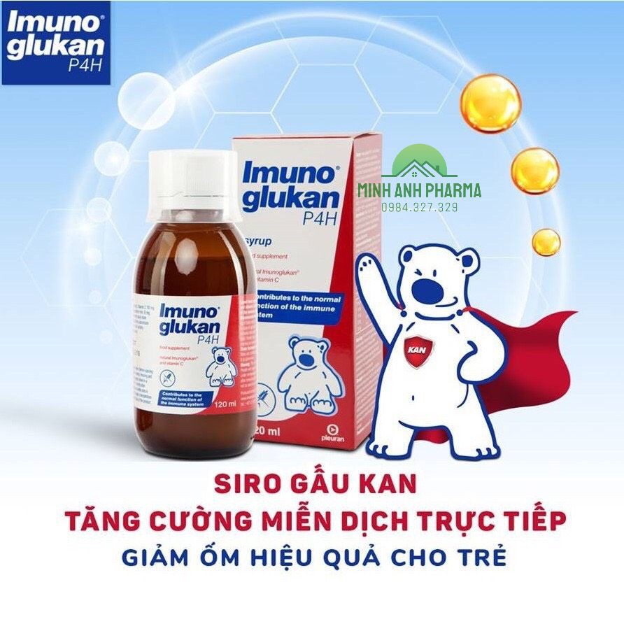 Sirô Imunoglukan P4H® giúp tăng khả năng phòng chống bệnh tật nhất là các bệnh đường hô hấp như viêm mũi, viêm họng, viêm phế quản, hen phế quản..., các bệnh do virus gây ra như cảm cúm, sởi, thủy đậu, sốt virus...