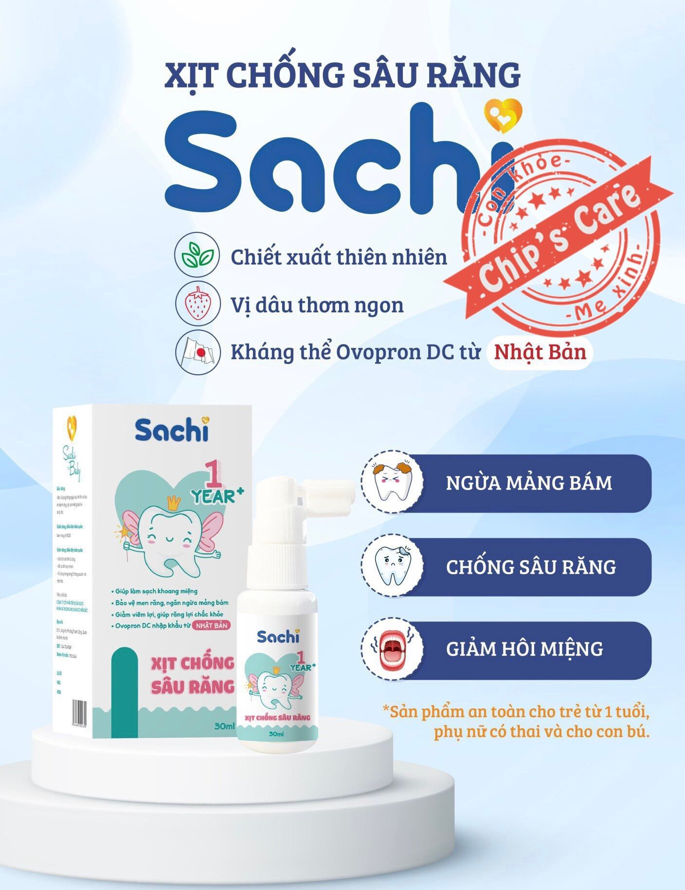 Xịt răng Sachi - Hỗ trợ ngăn ngừa mảng bám, sâu răng cho bé từ 1 tuổi - Lọ 30ml